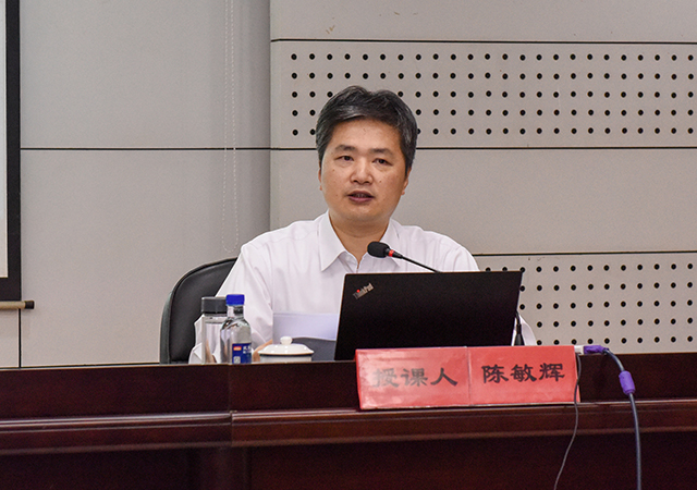 陳敏輝書記從“習(xí)近平新時代中國特色社會主義思想的科學(xué)理論體系”、“強化政治擔(dān)當(dāng),把黨的政治建設(shè)擺在首位”和“突出政治功能,努力提升組織能力”等三個方面,深刻透徹闡釋了習(xí)近平新時代中國特色社會主義思想。