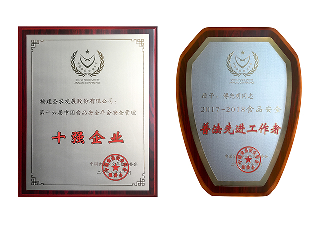 中國白羽肉雞聯(lián)盟主席、圣農(nóng)公司董事長傅光明也連續(xù)獲得了“安全管理十大人物獎”、“普法先進工作者”、“優(yōu)秀企業(yè)家”稱號.