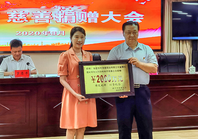 導(dǎo)讀:8月20日,南平市慈善捐贈(zèng)大會(huì)在建陽舉辦,市委常委、統(tǒng)戰(zhàn)部長莊莉,副市長羅恩平,南平市工商聯(lián)主席、慈善總會(huì)會(huì)長、圣農(nóng)集團(tuán)創(chuàng)始人傅光明出席會(huì)議。