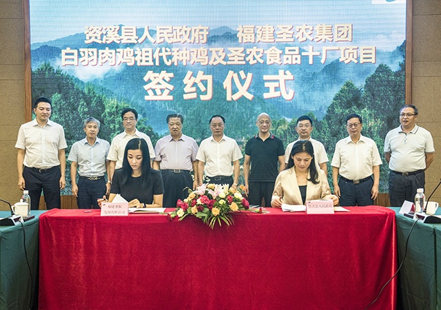 導(dǎo)讀:8月6日上午,圣農(nóng)集團(tuán)與資溪縣政府在大覺山酒店舉行“白羽肉雞祖代種雞及圣農(nóng)食品十廠項(xiàng)目”簽約儀式,吳淑琴縣長、傅芬芳董事長代表雙方簽訂協(xié)議,并互換文本。
