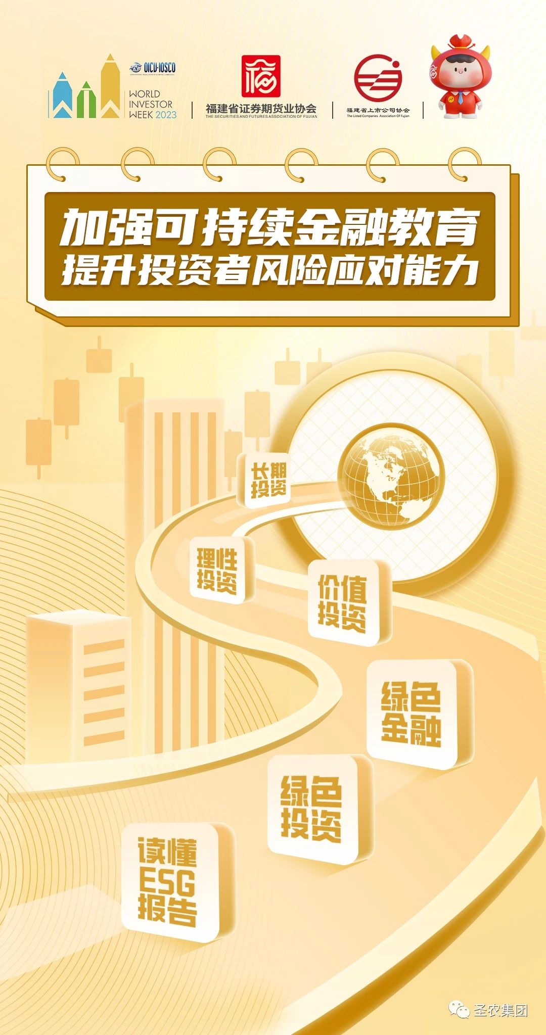 為使更廣泛的投資者可以從其組織開展的投資者教育和保護(hù)工作中獲益,在福建證監(jiān)局的指導(dǎo)下,圣農(nóng)發(fā)展(002299)開展“2023年世界投資者周”系列活動(dòng),本次世界投資者周活動(dòng)主要圍繞“投資者風(fēng)險(xiǎn)應(yīng)對(duì)能力”和“可持續(xù)金融”兩大主題,旨在增強(qiáng)廣大投資者風(fēng)險(xiǎn)防范意識(shí),傳遞理性投資、價(jià)值投資、長期投資理念。在此,特提醒各位廣大投資者:理性投資,防范風(fēng)險(xiǎn)。
