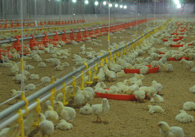 經(jīng)過(guò)嚴(yán)格的消毒程序,運(yùn)送苗雞的專(zhuān)用空調(diào)車(chē),緩緩駛?cè)氪笾奕怆u場(chǎng),從此,小雞們過(guò)上了食來(lái)張嘴、風(fēng)吹不到雨淋不著的幸福生活。